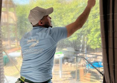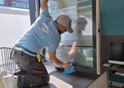 Reinigung der Glasscheibe und des Außenrahmens von innen und außen